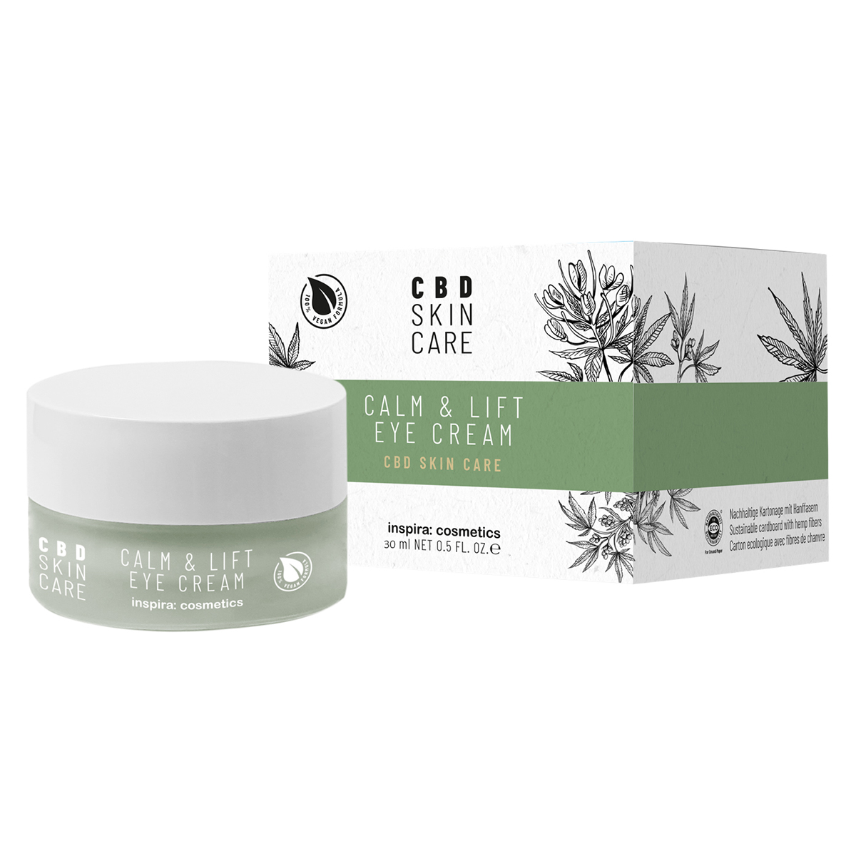 Krem qetësues me efekt lifting për konturin e syve me vaj kanabidioli (CBD), siguron lagështi intensive për 72 orë. Vitalizon, hidraton dhe jep efekt mat për lëkurën. Formula 100% vegane.
