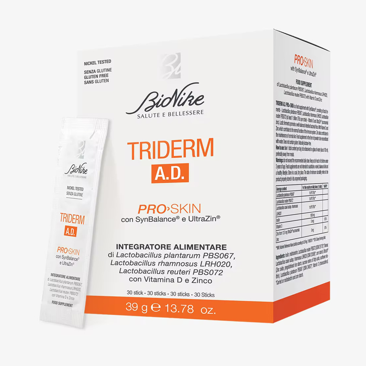 Përmban SynBalance®, një kompleks sinergjik me baktere të dobishme – Lactobacillus plantarum PBS067, Lactobacillus rhamnosus LRH020, Lactobacillus reuteri PBS072 (jo më pak se 1 miliard njësi formuese kolonish për çdo lloj) – si dhe Vitaminë D dhe Ultrazin® (Zink Sucrosomial®).